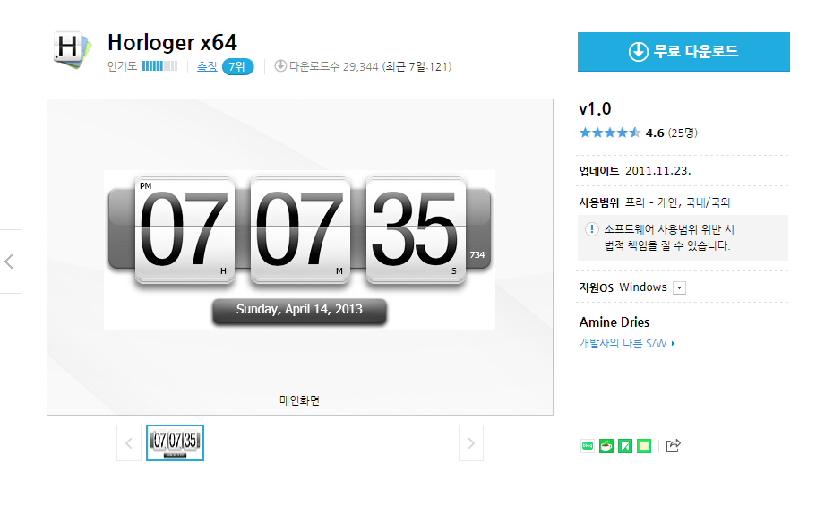 Horloger는 커다란 디지털 시계가 시간, 분, 초를 볼 수 있으며 시간 밑에 년도, 월, 일을 볼 수 있는 프로그램입니다.