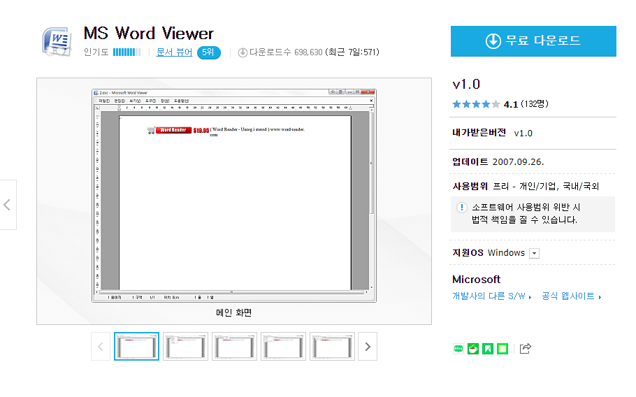 MS Word Viewer v1.0 무료 다운로드 (모두 다운받아 같은 폴더에 넣고 압축해제 하세요.)