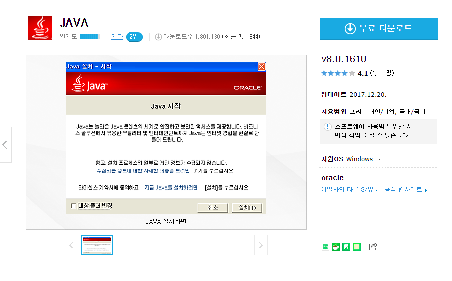 JAVA v8.0.1610 무료 다운로드 (모두 다운받아 같은 폴더에 넣고 압축해제 하세요.)