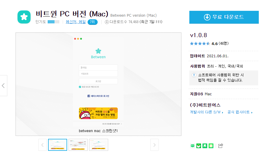 * 커플앱 비트윈의 채팅기능이 PC버전(Mac)으로 나왔습니다. 언제 어디서나 사랑하는 사람과 대화를 계속하세요. 최신의 OS를 지원합니다.