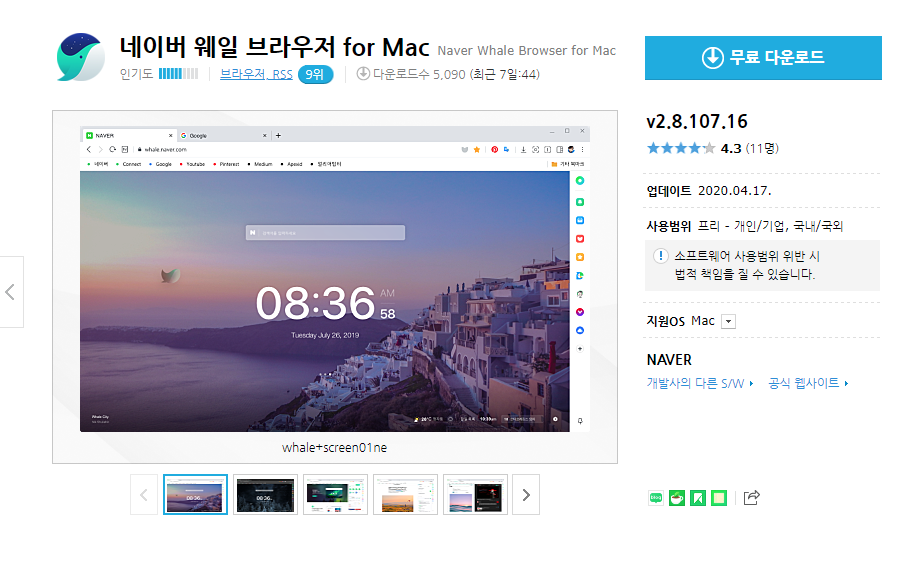 네이버 웨일 브라우저 for Mac v2.8.107.16 무료 다운로드 (모두 다운받아 같은 폴더에 넣고 압축해제 하세요.)