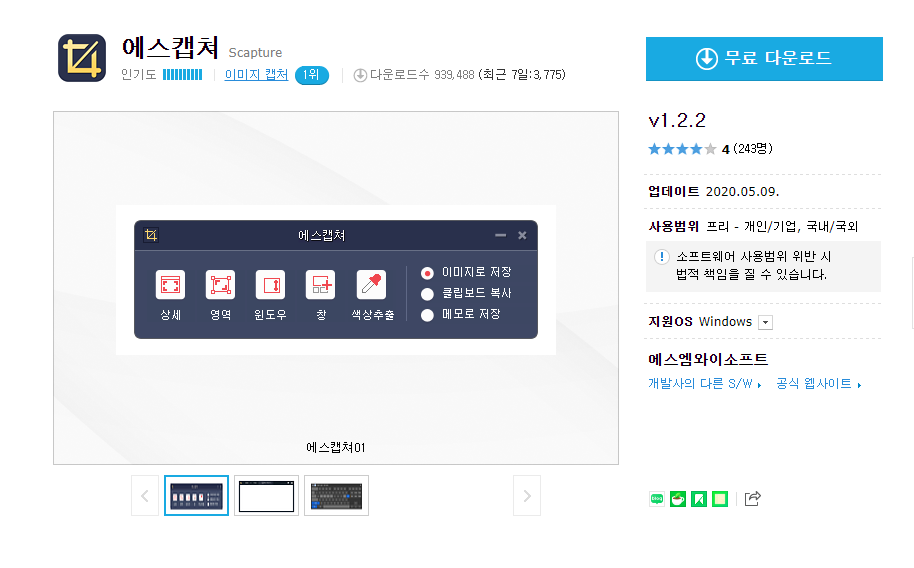 에스캡쳐는 가장 쉽고 빠른 캡쳐 프로그램입니다.