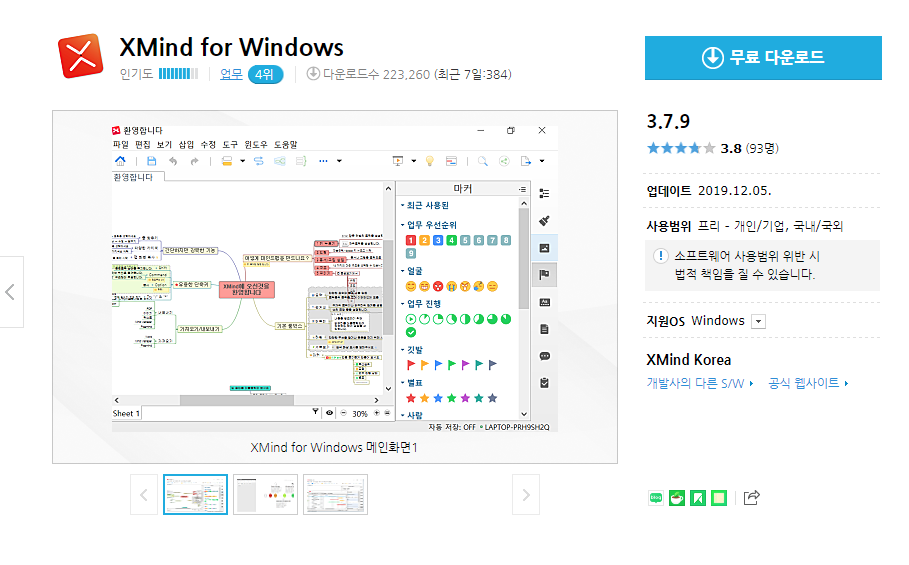 저장, 인쇄, 가지치기 수 제약이 없어 마음껏 실무에 사용할 수 있는 마인드맵 소프트웨어