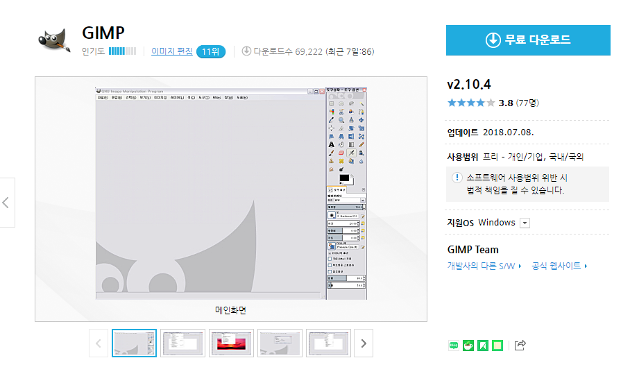 GIMP v2.10.4 무료 다운로드 (모두 다운받아 같은 폴더에 넣고 압축해제 하세요.)