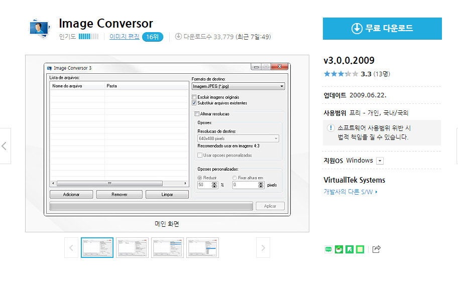 다운로드 받은 압축파일을 해제하시고 ImgConversor.exe을 실행하시면 됩니다.
