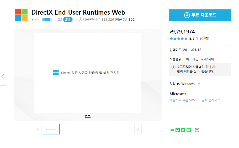 DirectX End-User Runtimes Web v9.29.1974 무료 다운로드