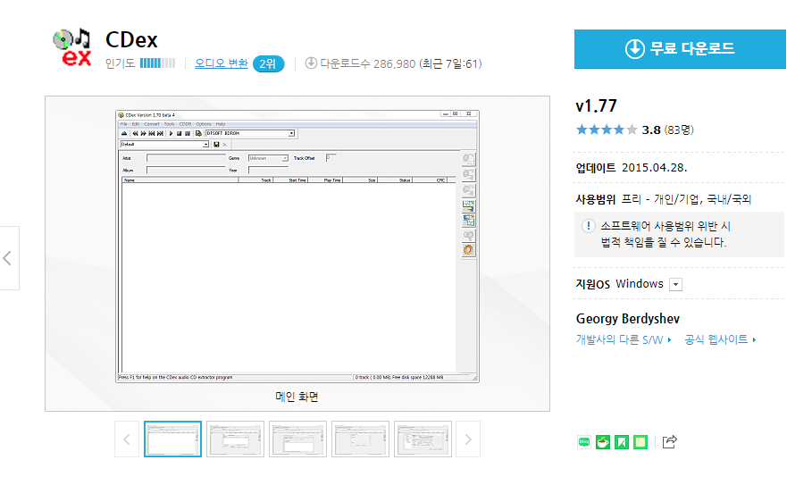 오디오 CD의 트랙을 추출하여 WAV / MP3 파일 형식으로 저장하거나, 오디오 파일 포맷 변환 등의 기능을 제공하는 프로그램입니다.