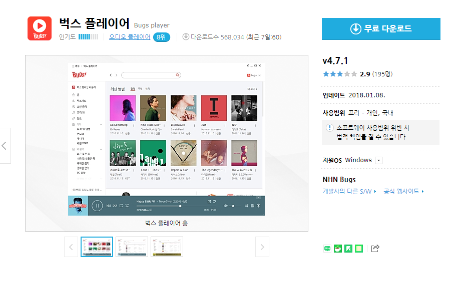 벅스 플레이어 v4.7.1 무료 다운로드 (모두 다운받아 같은 폴더에 넣고 압축해제 하세요.)