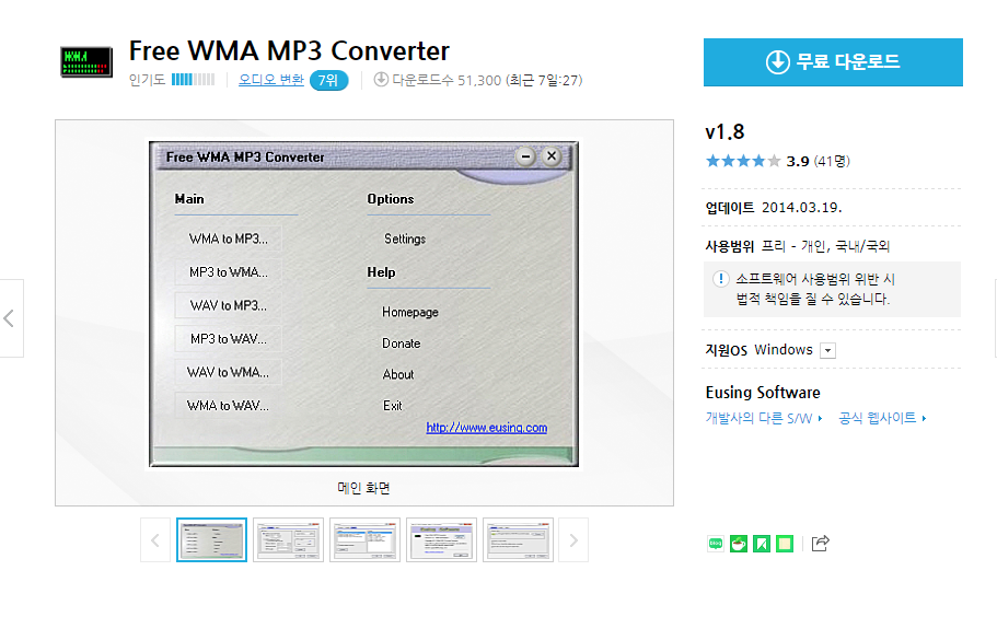 MP3 파일을 WMA와 WAV 파일로 변환이 가능합니다.