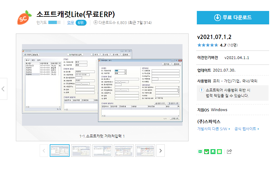 소프트캐럿Lite(무료ERP) v2021.07.1.2 무료 다운로드 (모두 다운받아 같은 폴더에 넣고 압축해제 하세요.)