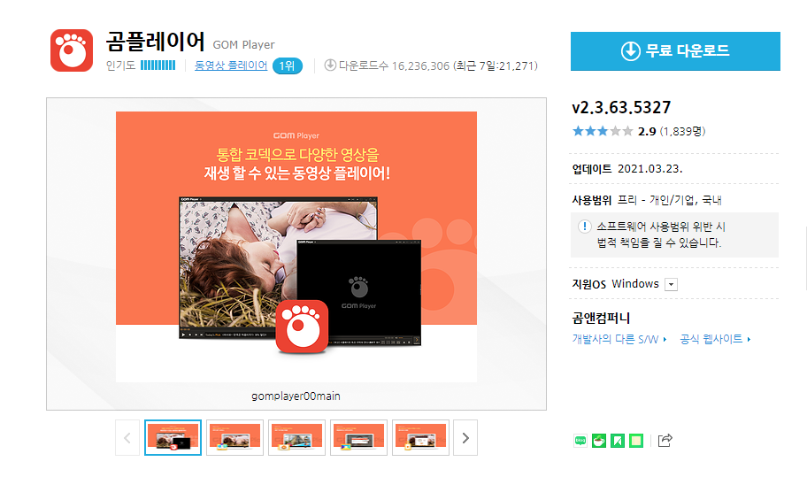 곰플레이어 v2.3.63.5327 무료 다운로드 (모두 다운받아 같은 폴더에 넣고 압축해제 하세요.)