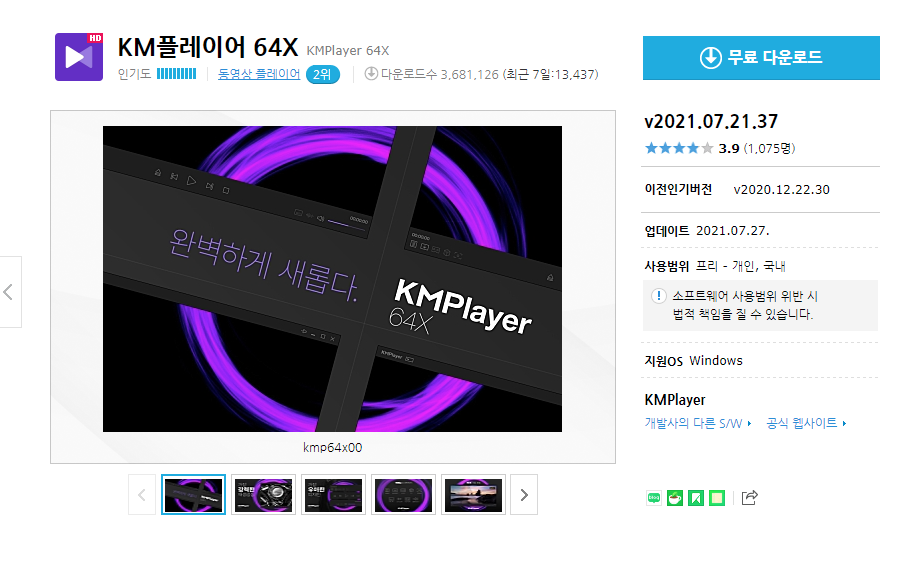| KM플레이어 v4.2.2.54 무료 다운로드 (0) | 2021.08.18 |