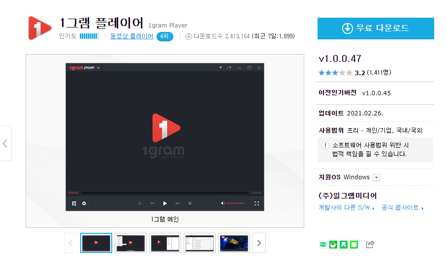 1그램 플레이어 v1.0.0.47 무료 다운로드 (모두 다운받아 같은 폴더에 넣고 압축해제 하세요.)