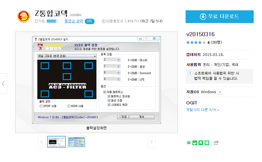 Z통합코덱 v20150316 무료 다운로드 (모두 다운받아 같은 폴더에 넣고 압축해제 하세요.)