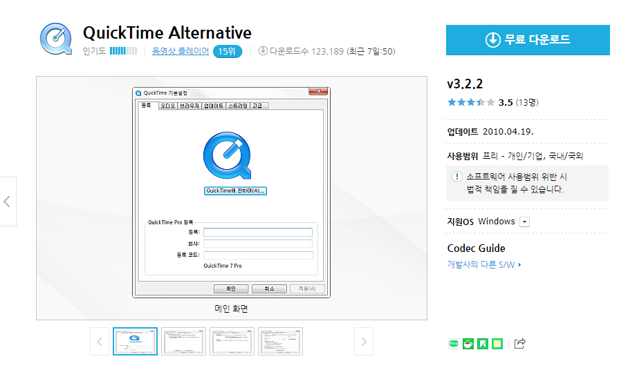 QuickTime Alternative v3.2.2 무료 다운로드 (모두 다운받아 같은 폴더에 넣고 압축해제 하세요.)