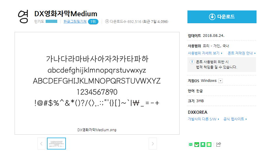 DX영화자막Medium TTF수동설치형 Windows용 무료 다운로드