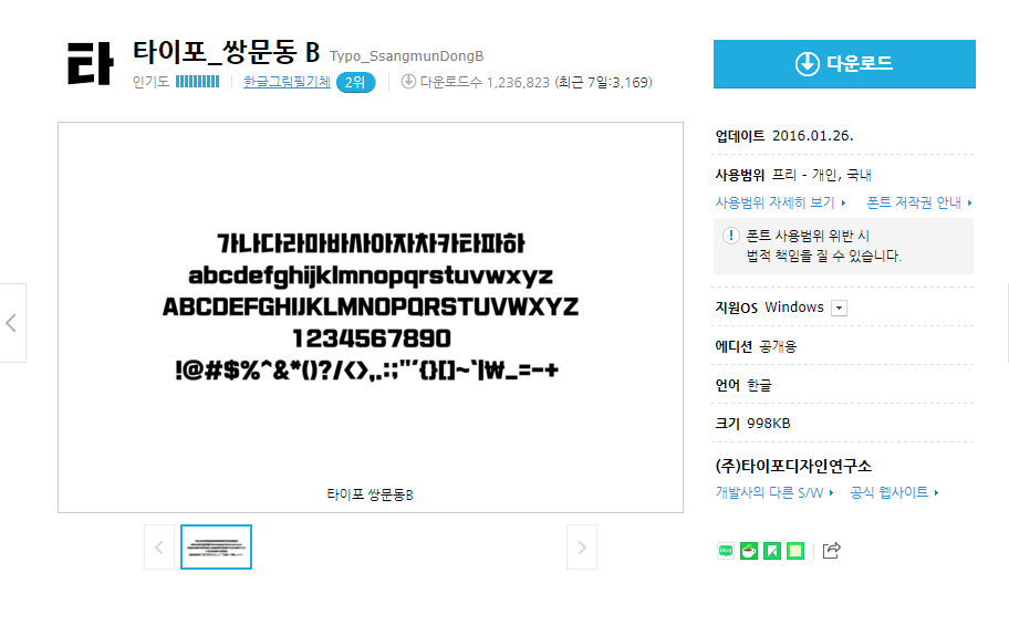 타이포_쌍문동 B TTF 수동설치형 Windows용 무료 다운로드