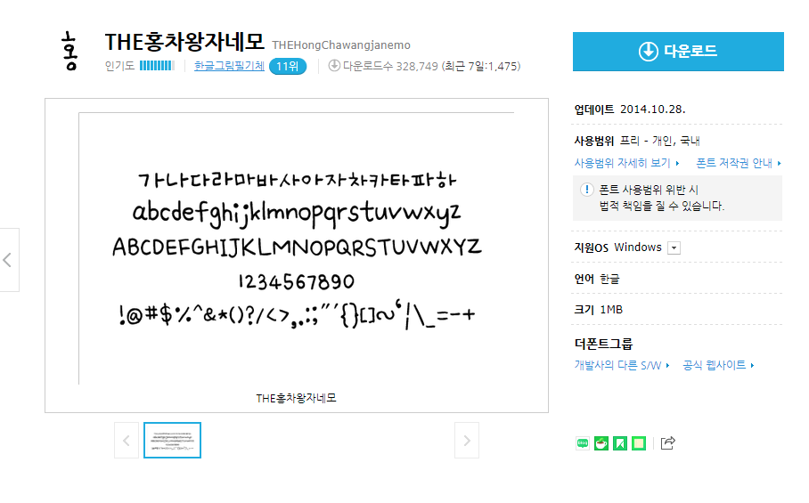 더폰트그룹의 폰트 무료사용 범위는 개인 사용자가 비상업적인 용도로 사용하는 경우에 한하여 사용이 가능합니다.