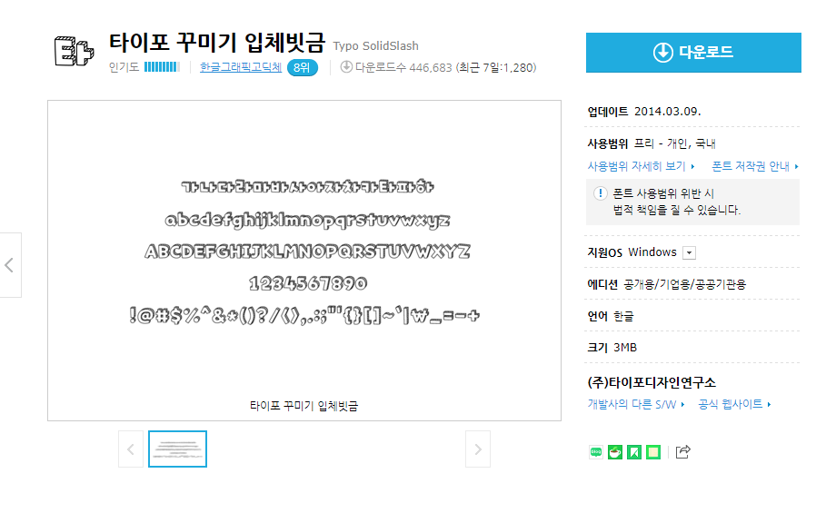 타이포 꾸미기 입체빗금 TTF 수동설치형 Windows용 무료 다운로드