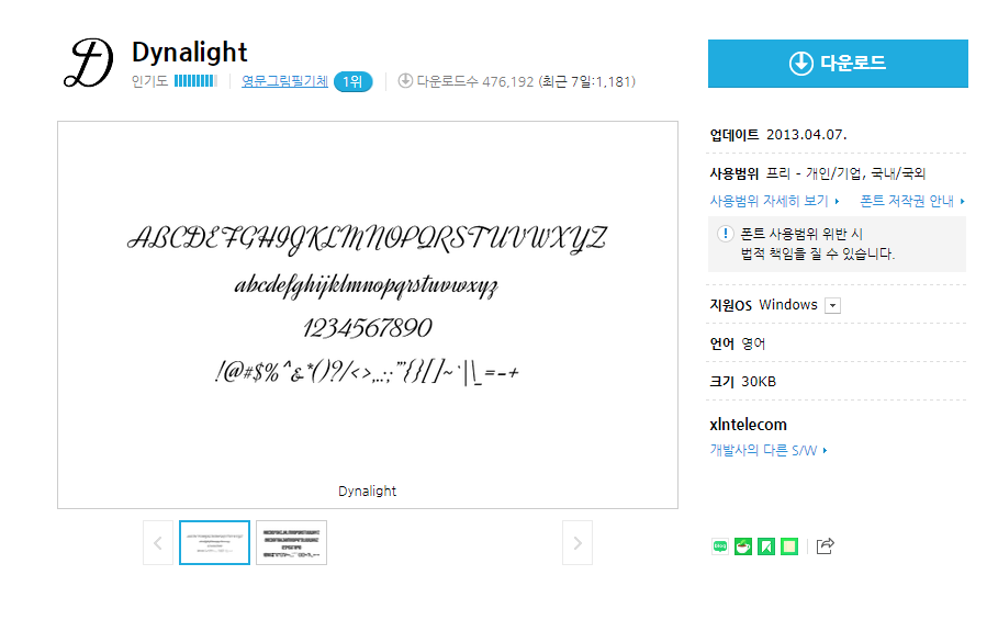 Dynalight TTF 수동설치형 Windows용 무료 다운로드