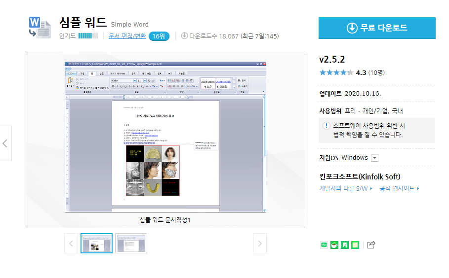주로 사용하는 워드프로세서 기능으로, MS Word 문서(docx, doc, rtf)를 작성하는 간편한 워드 프로그램입니다.