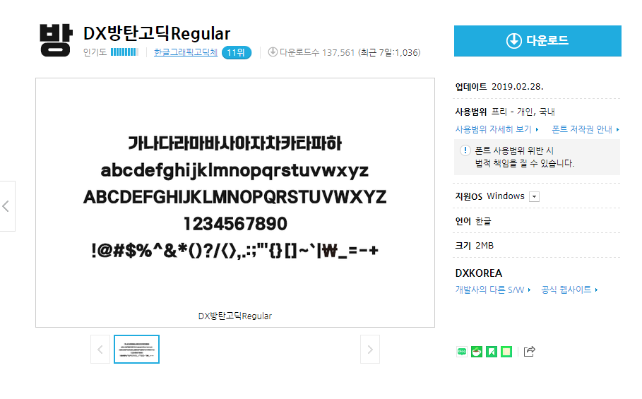 DX방탄고딕Regular TTF수동설치형 Windows용 무료 다운로드