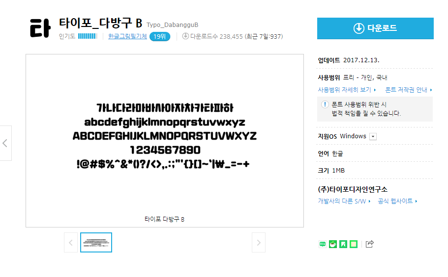 타이포_다방구 B TTF 수동설치형 Windows용 무료 다운로드