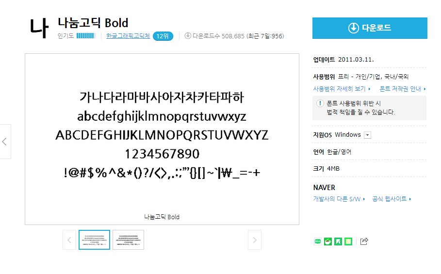 나눔고딕 Bold TTF 수동설치형 Windows용 무료 다운로드