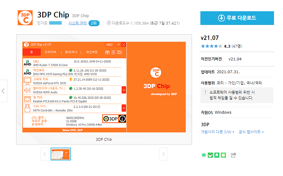 | CPU-Z v1.86 무료 다운로드 (0) | 2021.08.08 |