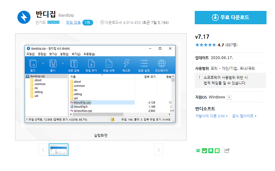 반디집 v7.17 무료 다운로드