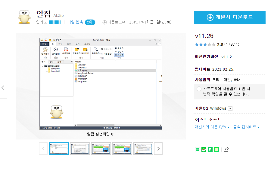알집 v11.26 무료 다운로드 (모두 다운받아 같은 폴더에 넣고 압축해제 하세요.)