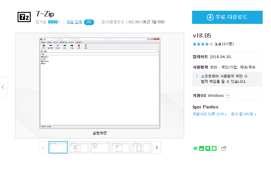 7-Zip v18.05 무료 다운로드