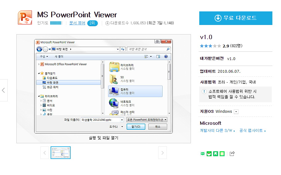 MS PowerPoint Viewer v1.0 무료 다운로드 (모두 다운받아 같은 폴더에 넣고 압축해제 하세요.)