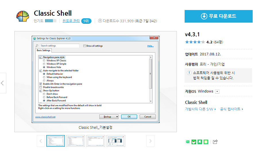 Windows8에서 이전 Windows OS의 시작 메뉴를 사용 할 수 있게 만들어줍니다.