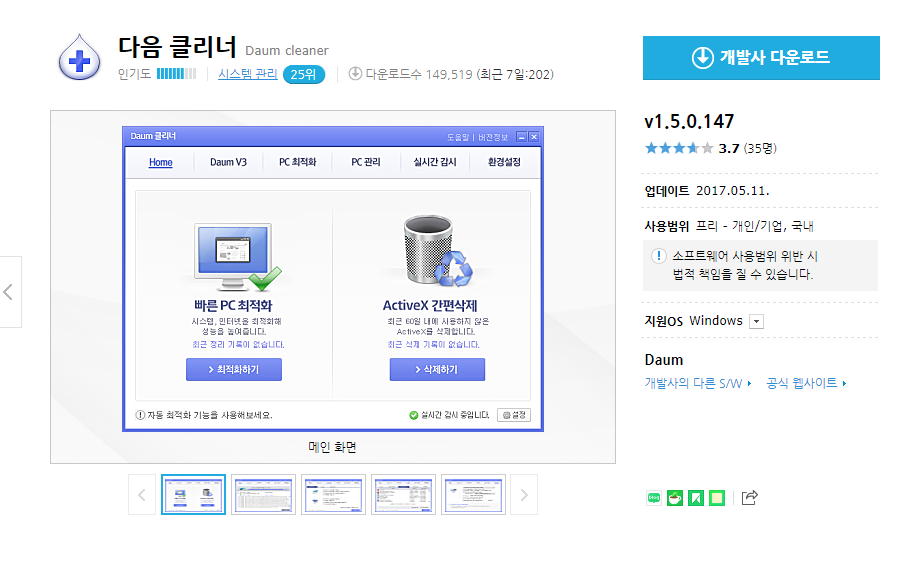 안철수연구소의 V3 엔진을 그대로 이용한 Daum V3 백신 클리너를 사용합니다.
