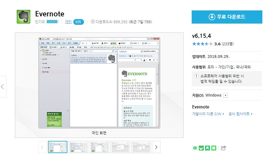 Evernote v6.15.4 무료 다운로드 (모두 다운받아 같은 폴더에 넣고 압축해제 하세요.)