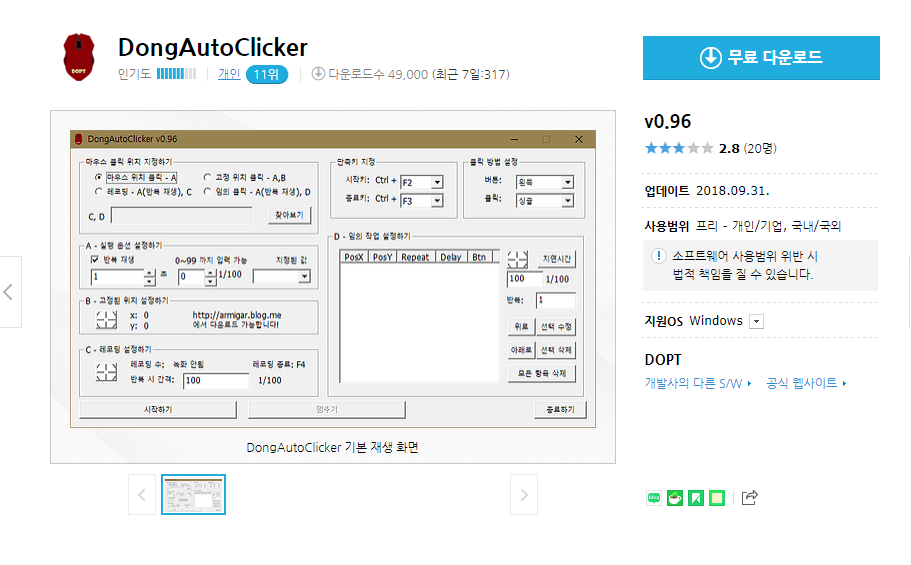 DongAutoClicker v0.96 무료 다운로드